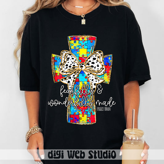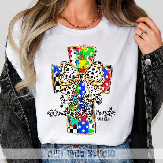 Fearfully & Wonderfully Made Autism Cross 1 - 2025 Digital PNG Design