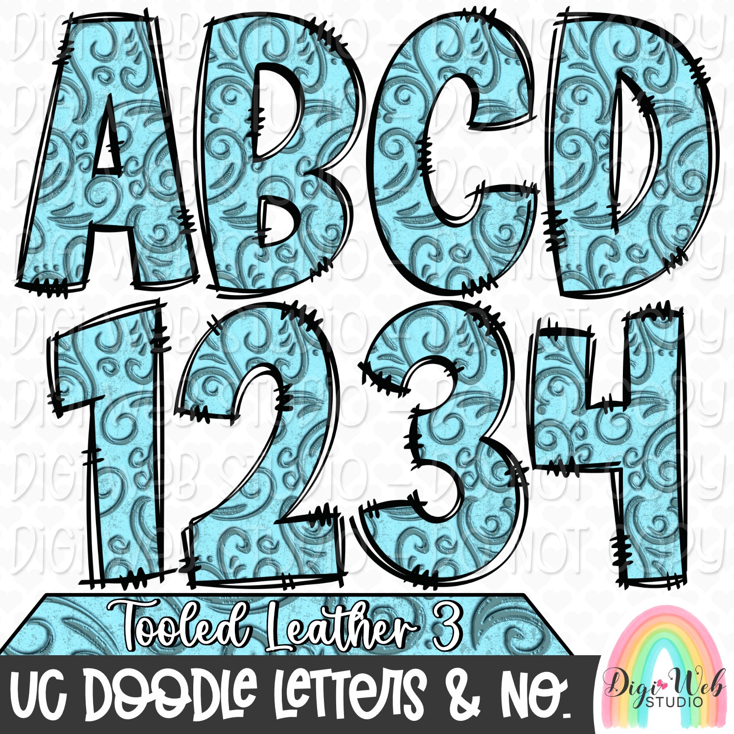 Design Elements - Tooled Leather 3 UC Doodle Letters & Numbers