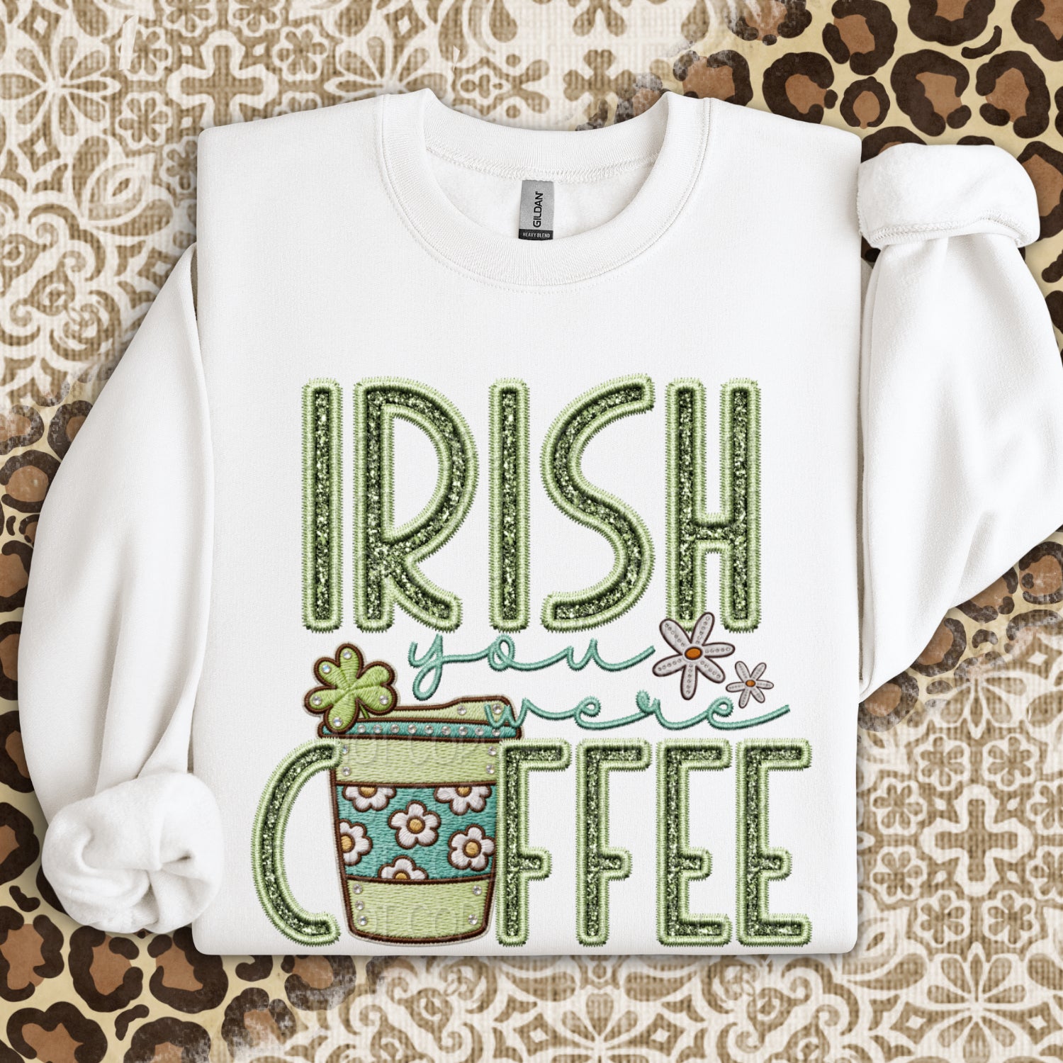 Faux Embroidery Irish You Were Coffee 1 - Digital PNG Design