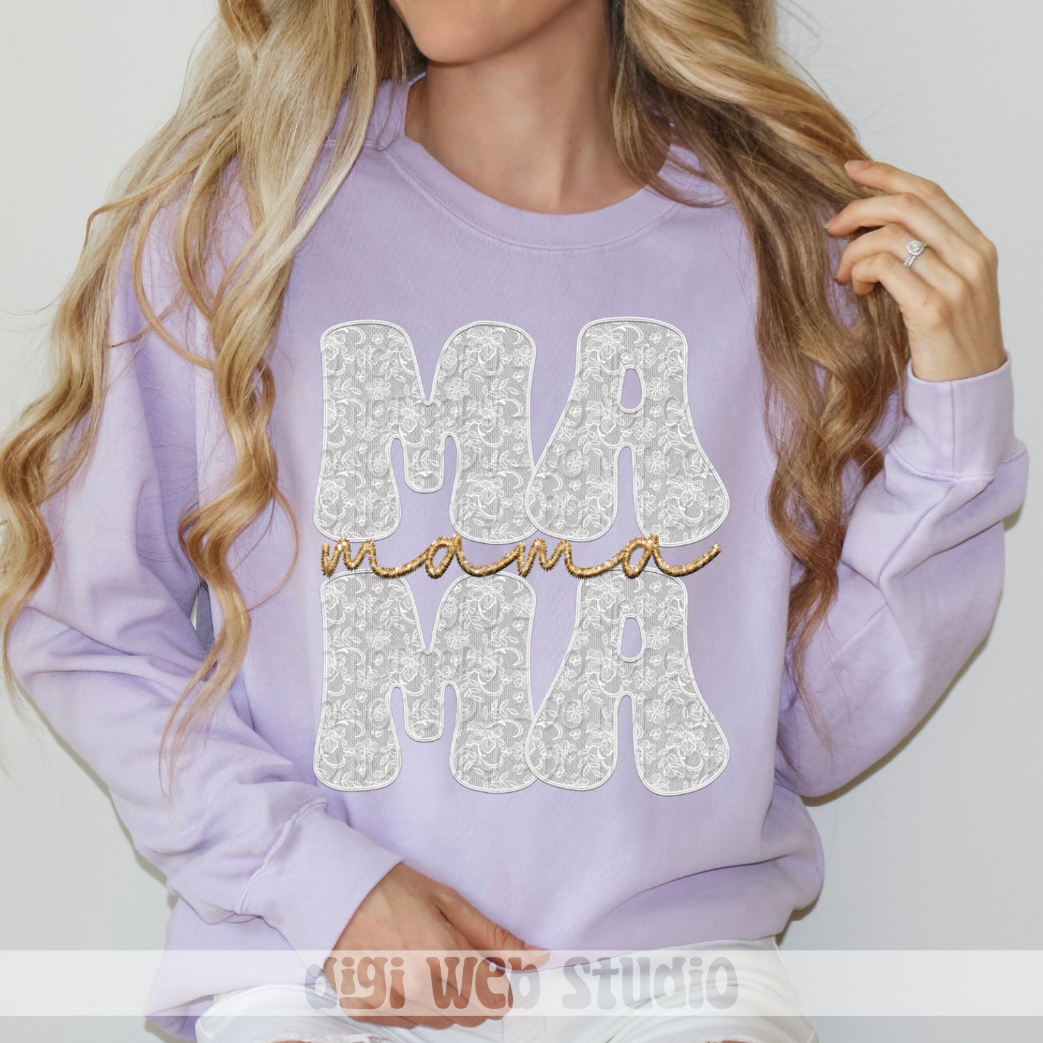 Faux Embroidery Lace Mama (White) - 2025 Digital PNG Design